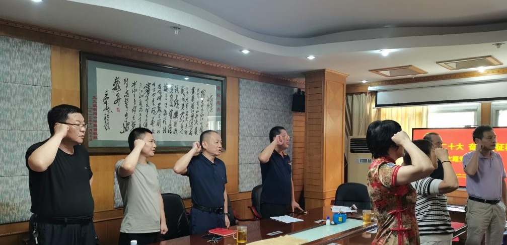 “我宣誓,我志愿加入中国共产党,拥护党的纲领,遵守党的章程……”一字一句,句句铿锵,党员们面对鲜红的党旗、庄严地举起右拳,精神饱满、铿锵有力地重温入党誓词,仿佛重回当初加入党组织的那一刻,铮铮誓言传递出党员们心中对党的无限忠诚。