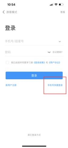 (1)打开学习通,点击登录,点击“手机号快捷登录”。